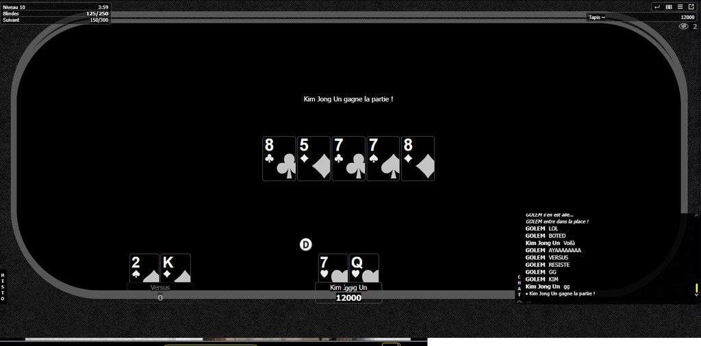 Trad, all-in monkey, puis game, puis bot raise pour finir.