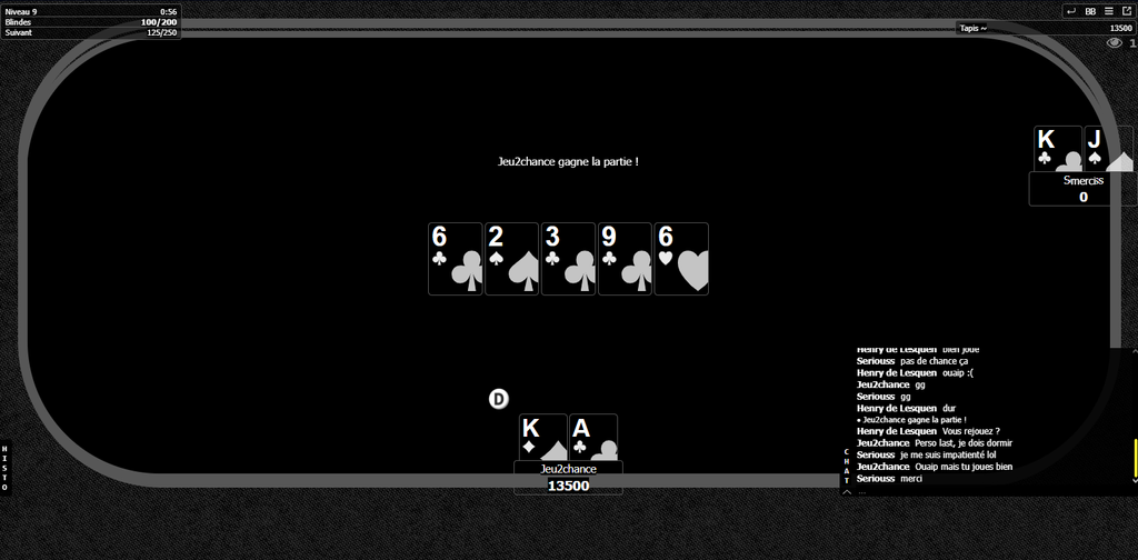 Je commence à m'habituer à chaque style en face, mais le bad beat permet de sélectionner tout le monde si la personne vous suit malgré les bluff, c'est pour ça que ça donne envie de casser la table, tu veux créer mais des fois, tu sais que dix games, t'auras r et c'est finito, je go dodo.
