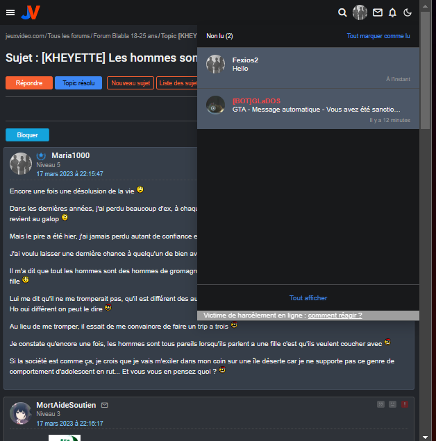 - topic ou vous expliquez que vous avez un bad boy 9/10 et qu'il vous a fappez et que les mecs c'est tous les mêmes