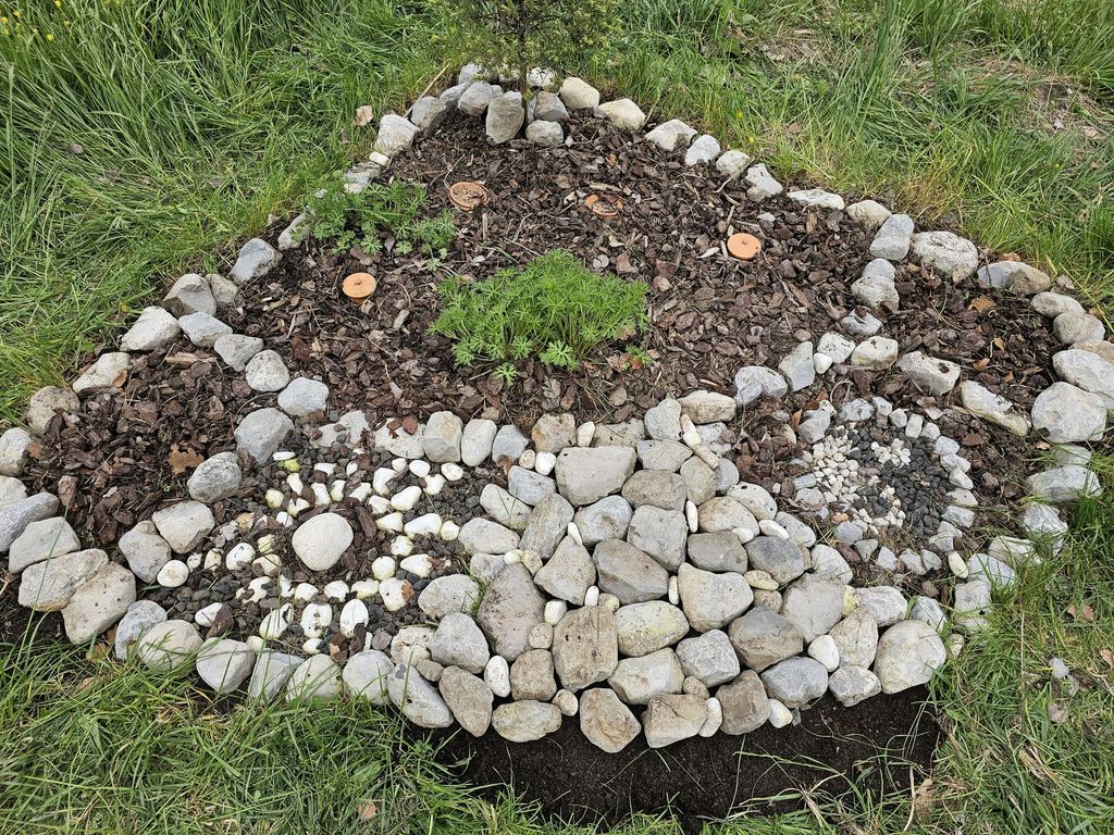 Comme on galère avec l'eau, y'a des oyas, 5 pour le moment (les petits couvercles en terre cuite qui dépassent) mais y'en aura 7 à terme