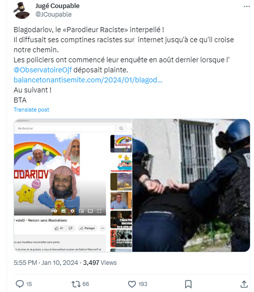 bravo à l'Etat Français en tout cas, quel plaisir de vivre dans un pays apaisé où l'Etat fait régner la loi contre les humoristes et les chansonniers, ainsi que contre les polémistes et commentateurs politiques