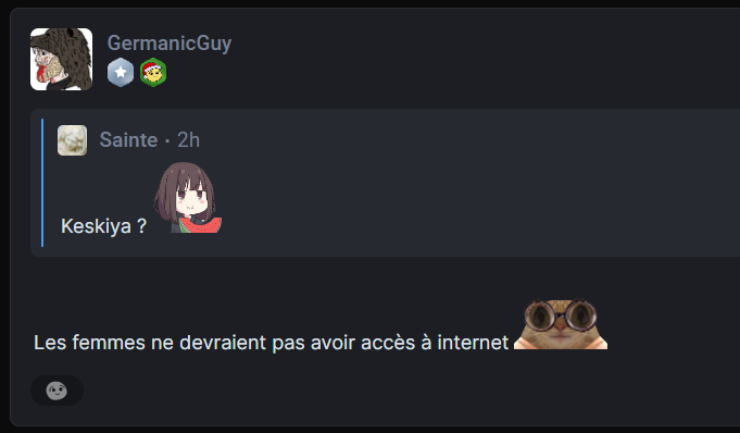 Si tu lisais des intellectuelles femmes (surtout celles du passé, même si c'est valable également pour les hommes), tu verrais que les femmes n'ont rien à envier aux hommes en intellect, en tout cas en réflexion. Mais bon la misogynie typique des nazis/pangermanistes/racialistes quoi