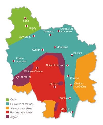 Comme on peut le voir sur les carte ci-dessous, le mâconnais est une région avec un sol calcaire située au Sud de la Bourgogne dans le département de la Saône-et-Loire (71) entre Mâcon au sud et Tournus au Nord.