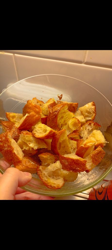 Je ne suis pas du tout spécialiste mais n’y a-il pas un risque de décomposition ? Pourquoi ne pas utiliser de vrais croûtons genre baguette, comme ce qu’on utilise pour la soupe de poisson par exemple ?