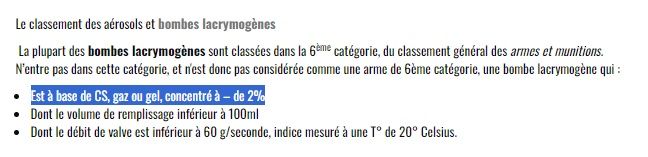- OPTION 1: bombe réglementaire légale au "poivre" qui spray de l'air avec moins de 2% de gaz CS (sert à rien)
