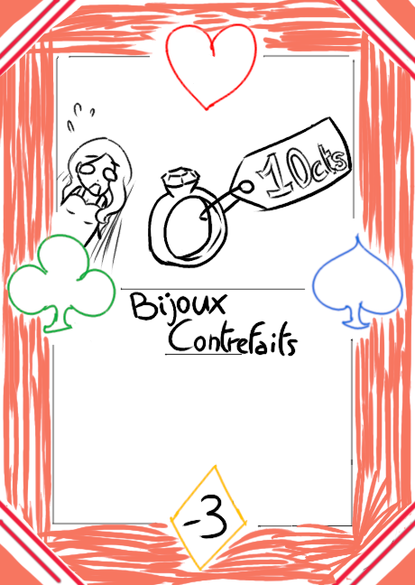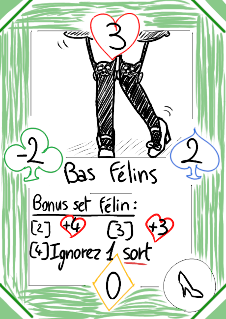 Du coup ça va être une question de bien s'adapter aux Actions qu'on tire, s'équipper pour équilibrer ses Attributs et augmenter ses chances, et savoir viser les bonnes cibles pour éviter de repartir sans rien. Il y a tout un truc avec des cartes Sortilège qu'on lance pendant le bal pour s'avantager, en considérant que les autres peuvent en lancer aussi, et c'est rapidement le chaos