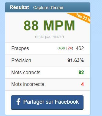 c'est pas mal, tu pourrais être 1.5/2x plus rapide en apprenant à taper de manière correcte