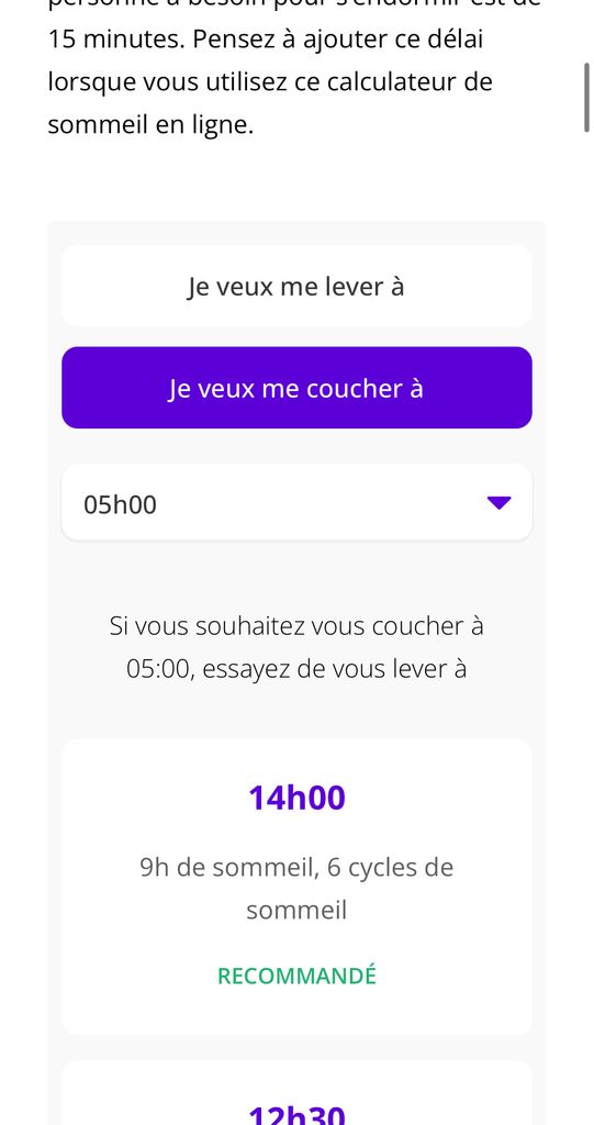 Sur ce site, ça met que si je veux me coucher à 5h00, il faut que je me lève à 14h00.