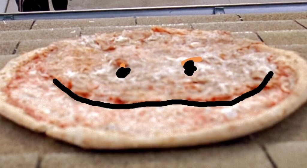 En plus si on zoom on dirait que la pizza souri.. Elle s'attendait à être déguster dans une famille heureuse...
