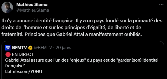 mais il a raison, il n'y a pas d'identité républicaine, par contre oui il y a une identité française