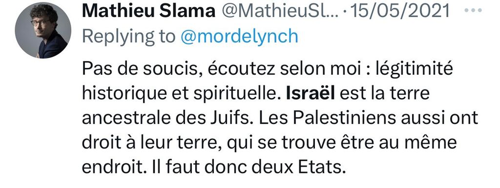 Mathieu Slama : "Israël est la terre ancestrale des Juifs"