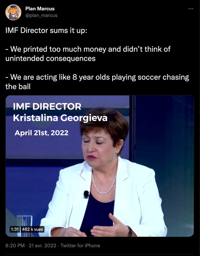 Kyle Bass de Hayman Capital, l'une des célébrités du Dow Jones et des hedge funds sur FoxBusiness « nous voyons déjà des hausses de 40% sur à peu près tout… car la Fed a imprimé bien plus d'argent qu'il n'aurait dû pendant les confinements… Là ils ont perdu le contrôle… on va vers une immense recession »