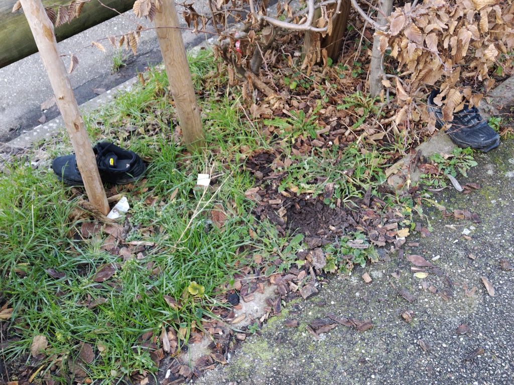 Des fois tu trouves des trucs chelou comme ça quand tu te balades. C'est comme quand j'étais au Portugal yavait des chaussures d'enfants type crocs, abandonnées. . .