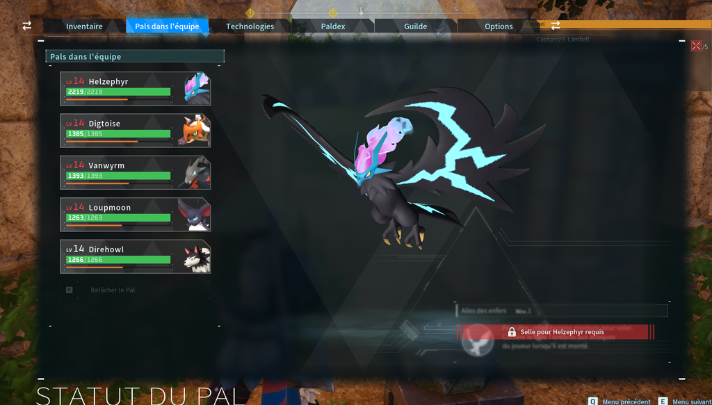 En courant partout dans la zone de début et en capturant les premiers pals du jeu 10 fois, tu montes très vite