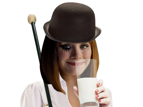 Non c'est la scène dans orange mécanique où le mec en blanc taps une meuf avec une statue de bite