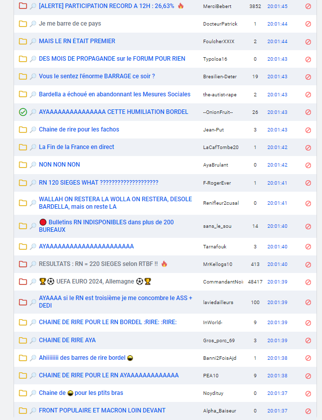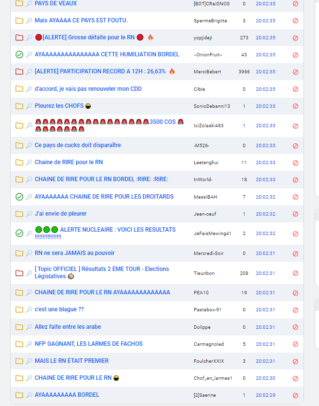 Je pense que si t'exclus les vois où NFP+EM étaient présents et que tu additionnes le reste, on doit bien dépasser le RN en nombre de votes