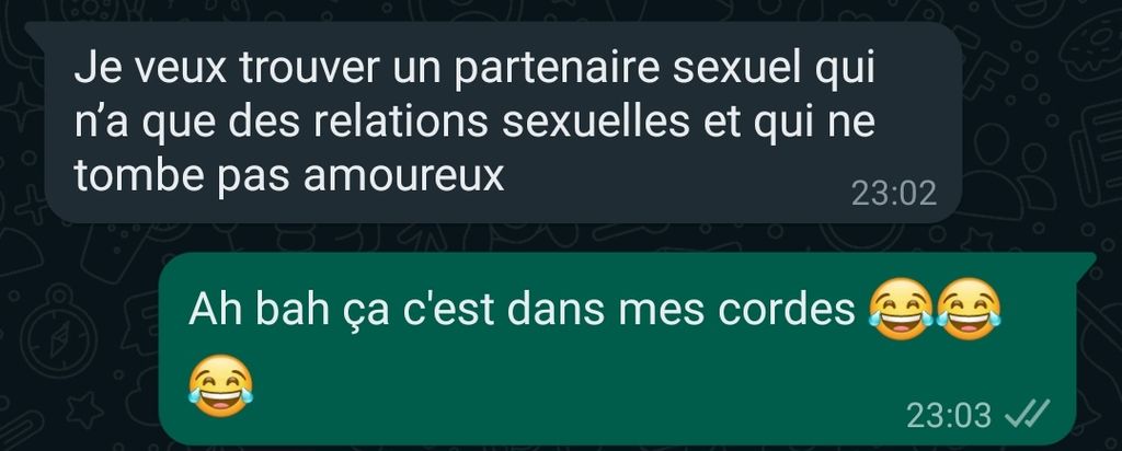 Elle me demande avec combien de filles je couche en ce moment et si je me protège et elle fini par me répondre "OK quand j'ai envie je t'appelle"