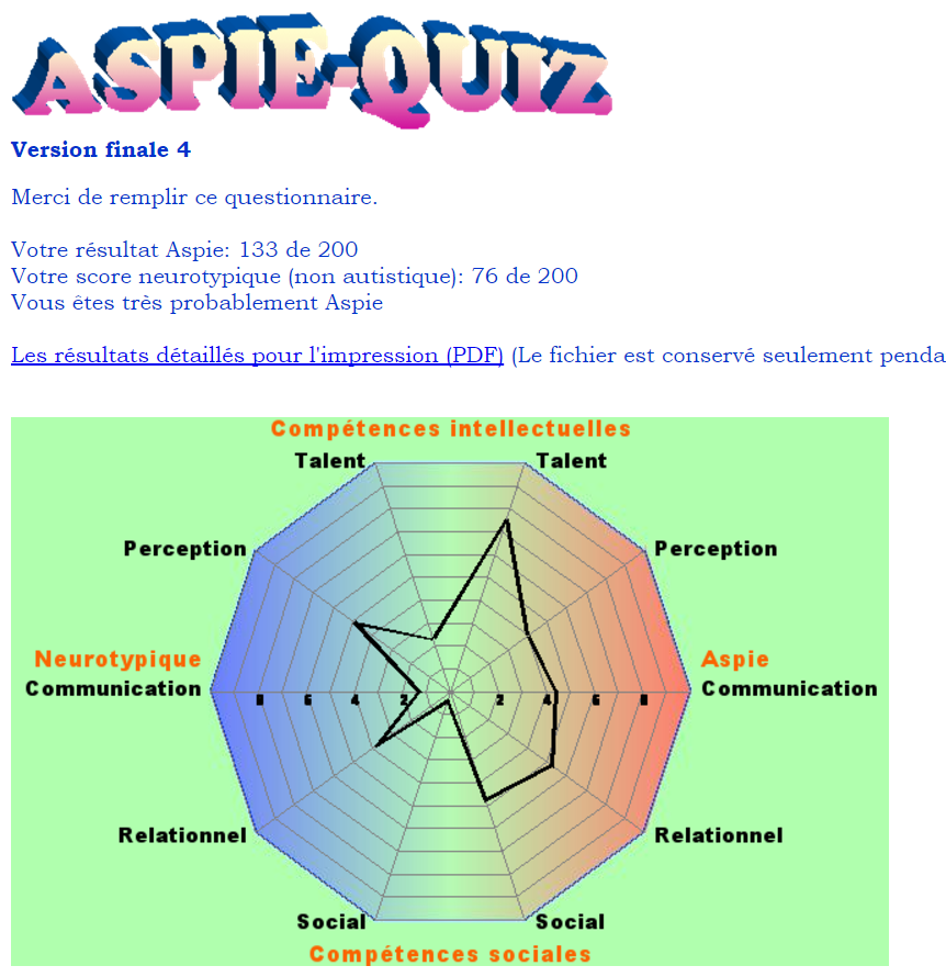 Putain mais t'as un Aspie-Quizz moins autiste que moi alors que t'as été diagnostiqué autiste ?