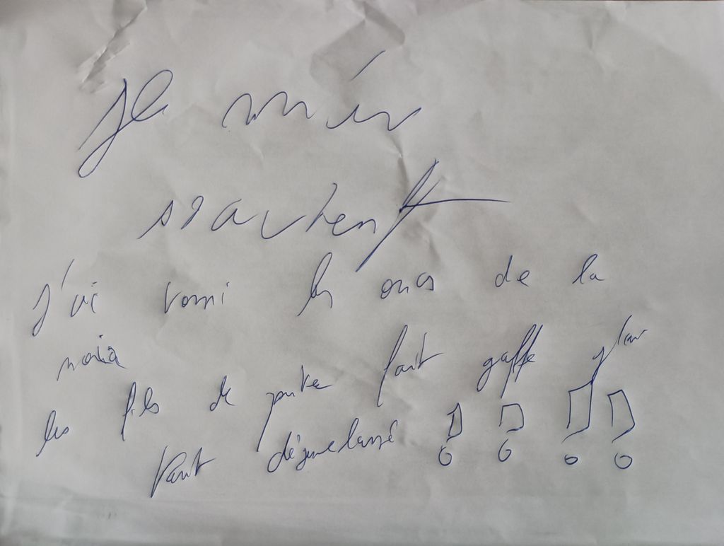 Un jour je me suis réveillé mon pote avait dégueulé par terre mais il a quand même pris le temps d'écrire un message à mon attention
