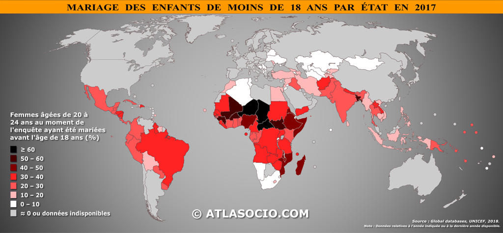 Taux de mariage des mineurs dans le monde 2017