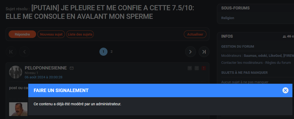 Le plus fou c'est que c'est SEUL délire, sans parler des topics de cons soit fait par des bots ou des spammeur de discord LFI