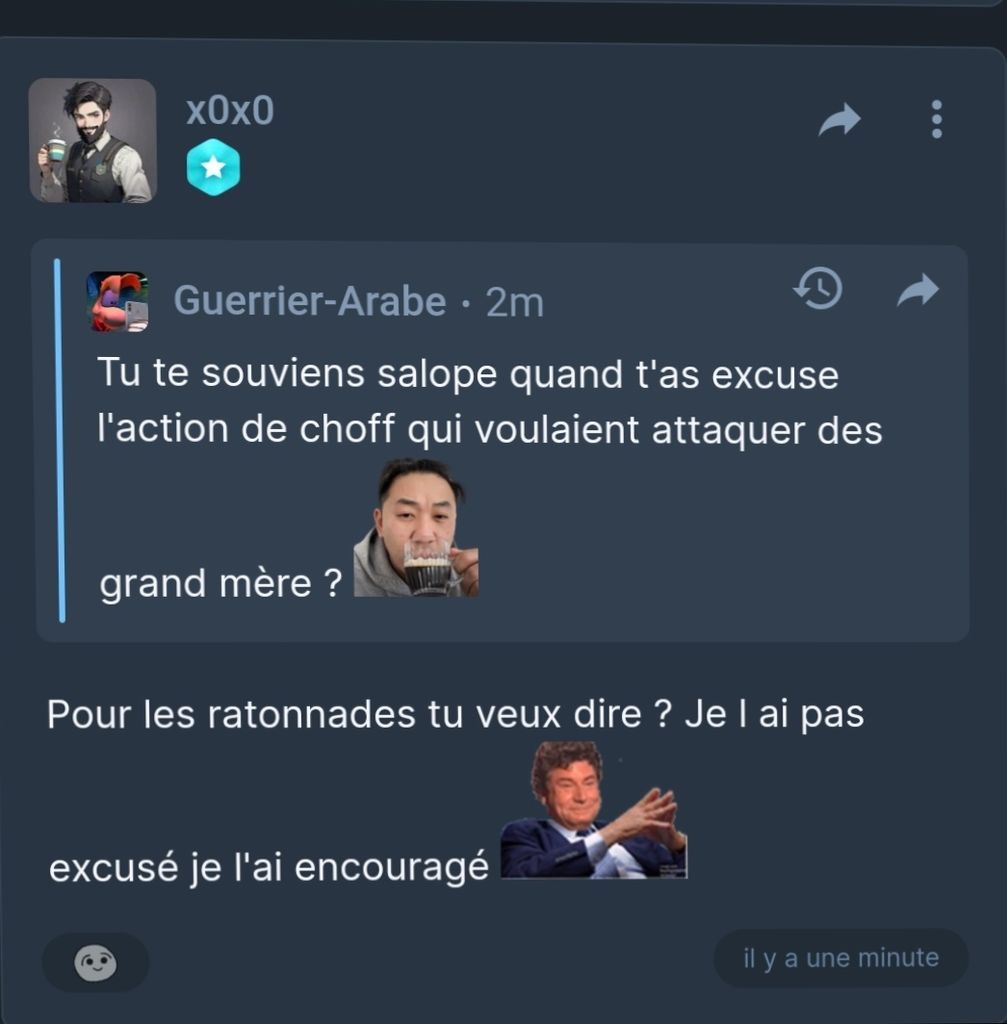 C'est dommage qu'il puisse pas te répondre et que tout le monde (toi y compris) rigole du fait qu'il soit enfin dégagé