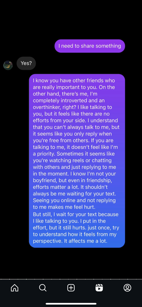 avant quand j'étais plus jeune je répondais tout de suite mais maintenant j'ai pas toujours "l'énergie sociale" de répondre quand on m'écrit
