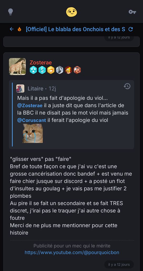 Ce screen montre que c'est pas la modération qui a allégué qu'il y'avait une prétendue apologie du viol....