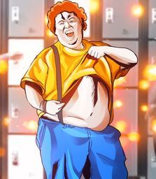 Après je pense que c'est trompeur et que c'est parce qu'il a chié dans son froc qu'il a l'air avoir un énorme boule d'ailleurs on entend des gros prouts dans le générique