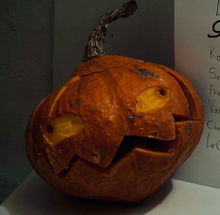 Alors en fait j’ai essayé mais le truc c’est que si je l’ai taille c’est par ce qu’il était en train de pourrir ( on le voit pas sur la photo ) sauf que le potimarron était si pourrie qu’en le taillant il s’est démembrer dans mes mains j’ai dû recoller les bouts à la main