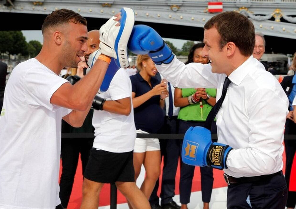 Macron qui veut faire le malin devant les caméra et te lâche un "te retiens pas"