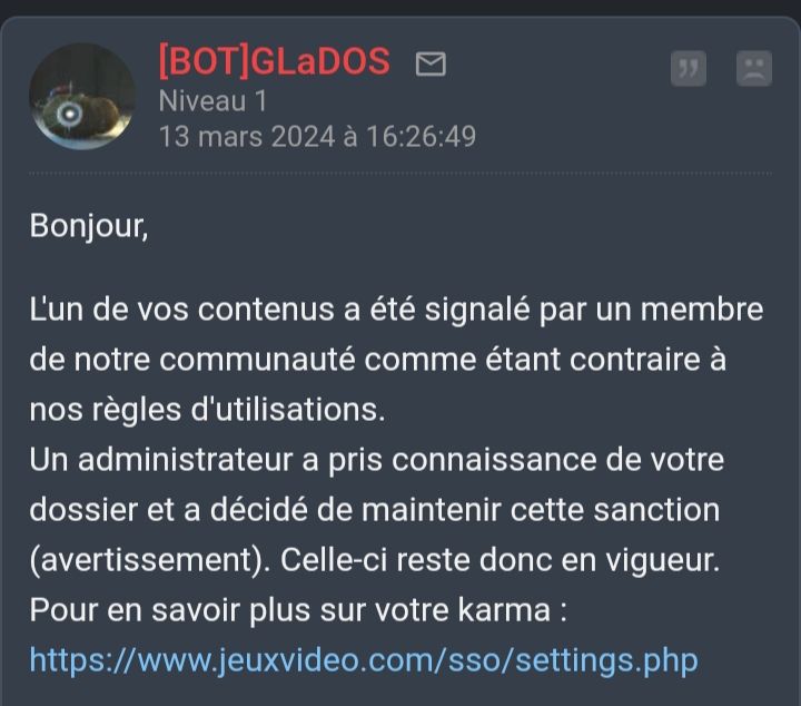 J'avais eu un ban def sur mon pseudo "puceaudomie" parce que quelqu'un l'avait signalé et qu'apparemment ce pseudo ne méritait pas d'exister