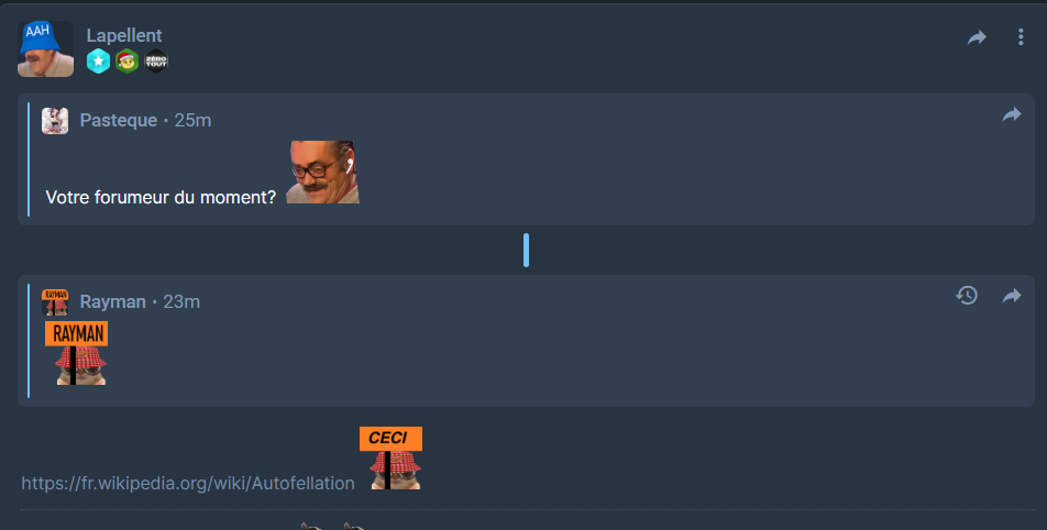Absolument pas tu voulais même qu'on se capte IRL jusqu'à ce qu'on parle d'Hermione qui serait grand remplacé et j'ai dis que je voulais que ça reste une rousse et pas que ça devienne une noire et à partir de là t'as vrillé car t'es une grosse merde t'as même été voir des gens leur dire de plus me parler mdrrrr