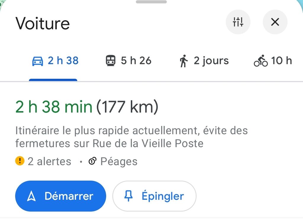 Disons 2h30 vu que j'ai pris la route dès que j'ai vu ton post