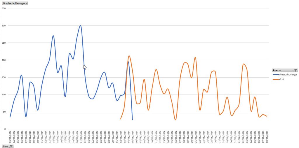 Nombre de message par jour (Pirate_du_Gange et xOxO) :