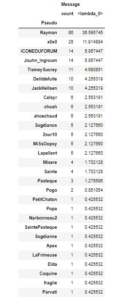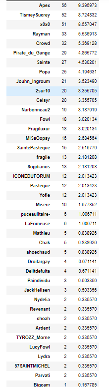 Tiens j'avais aussi fait un script pour sélectionner les messages d'un pseudo qui contiennent une suite de lettre, du coup voilà les 30 messages de popa qui incluent le terme "apex"
