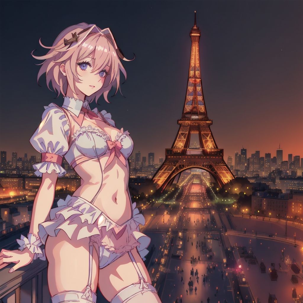 bon en fait le prompt c'était "A french femboy look like astolfo holding a french flag, with the eiffel tower in the background" mais globalement c'est juste "Fragiluxur à Paris" quoi