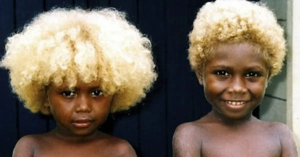 Ya les mélanésiens sinon qui ont la peau noirs et les cheveux blonds/roux