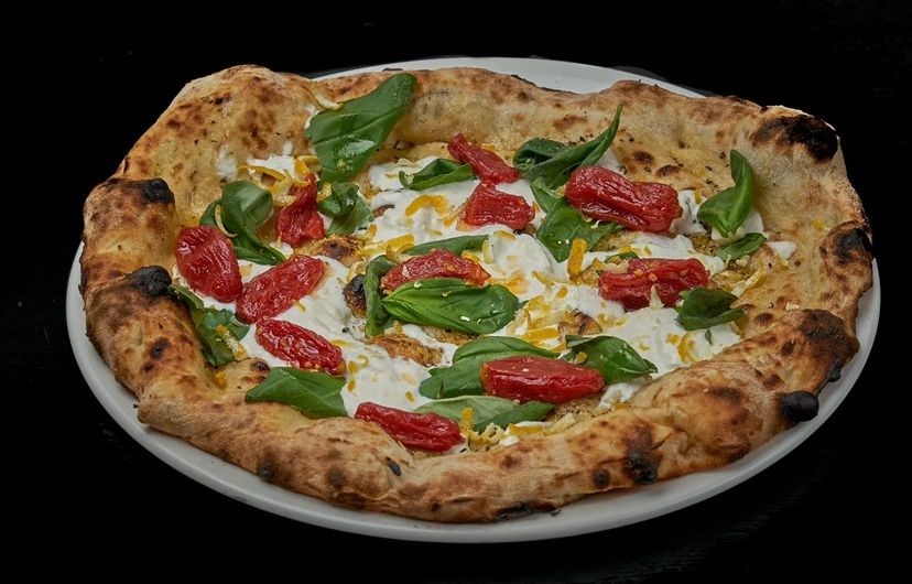 Moi je suis une bianca sans base, avec de l’huile d’olive des tomates cerises de la burrata du basilic et un zeste de citron