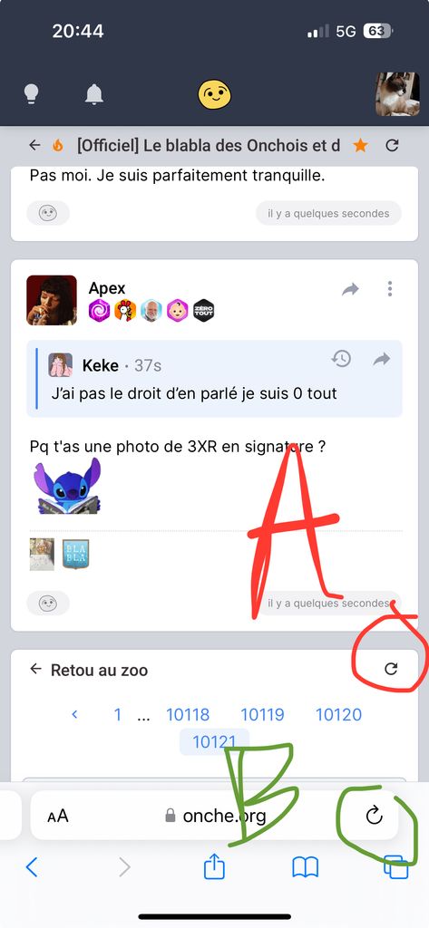 Je vais toujours au plus simple, généralement quand tu défiles dans les posts ton doigt est forcément plus proche de l'option A