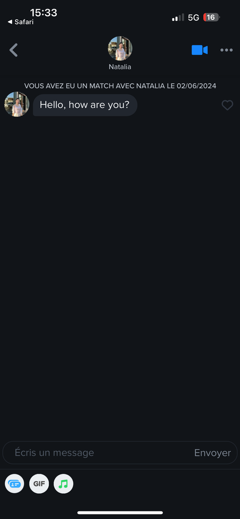 Je viens de match + DM sur Tinder, mais compte de bot évident.