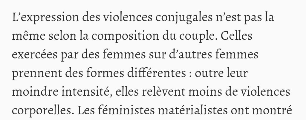 Pour ta gouverne, il y a moins de violences physiques ou sexuelles dans les couples lesbiens que dans les couples hétéro