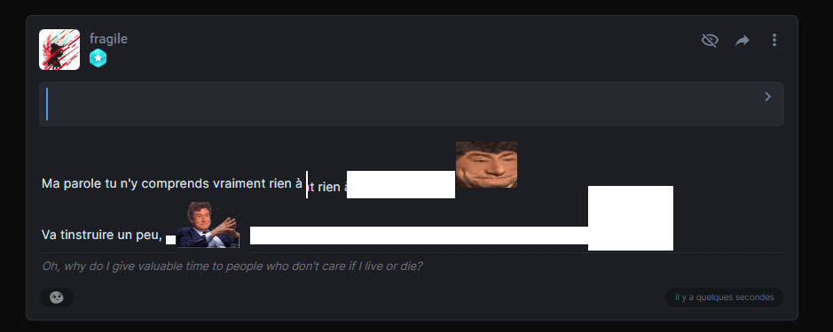 Non pcq j'ai eu des échos . . . Apparemment c'était littéralement vraiment la boucle