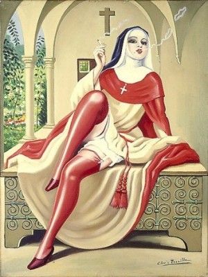 Hopla la religieuse italienne fumant une cigarette de Clovis Trouille