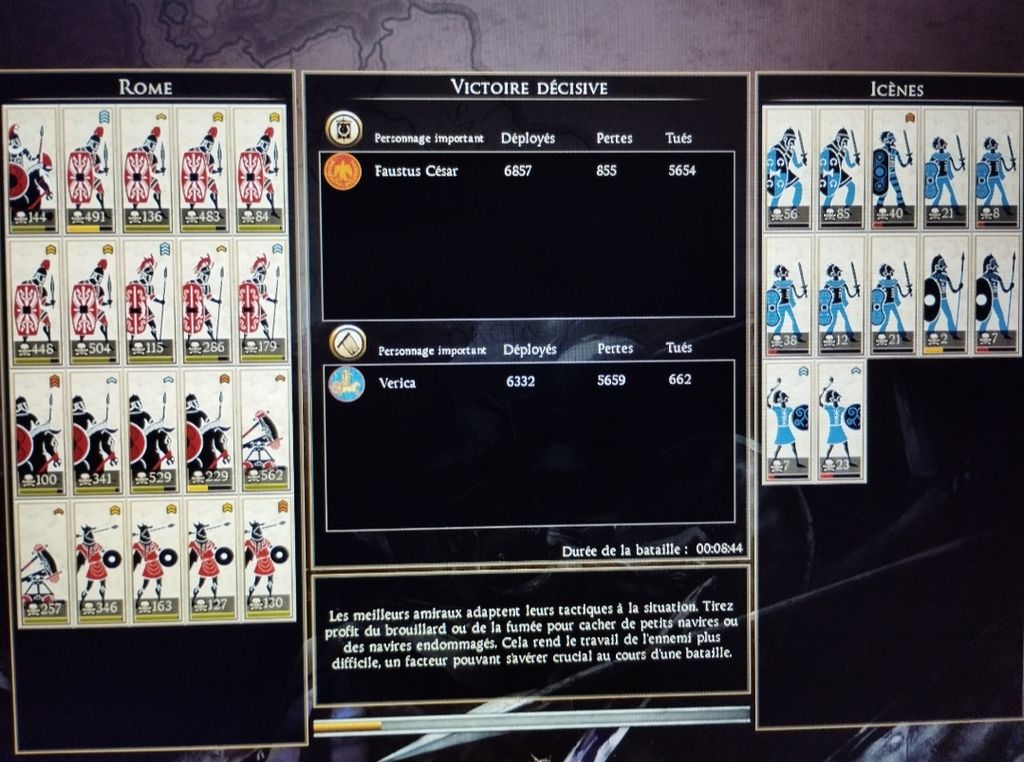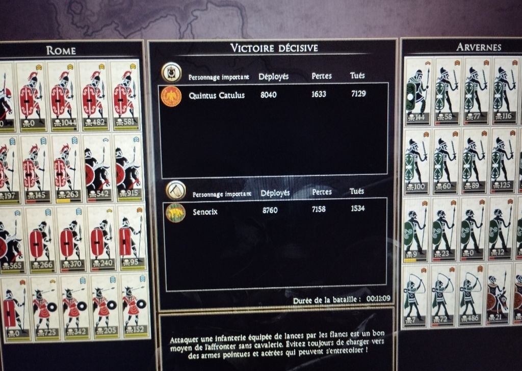 Moins impressionnant en terme de nombre mais j'ai martyrisé les sauvages tout le long de la campagne comme ça, Rome c'est vraiment OP dans ce jeu