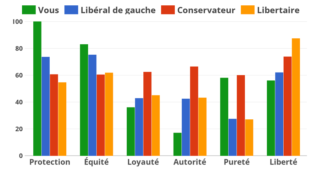 Votre moralité est la plus proche de celle de Libéral de gauche."