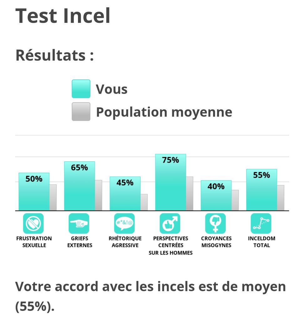 "Votre accord avec les incels est moyen (54%)."