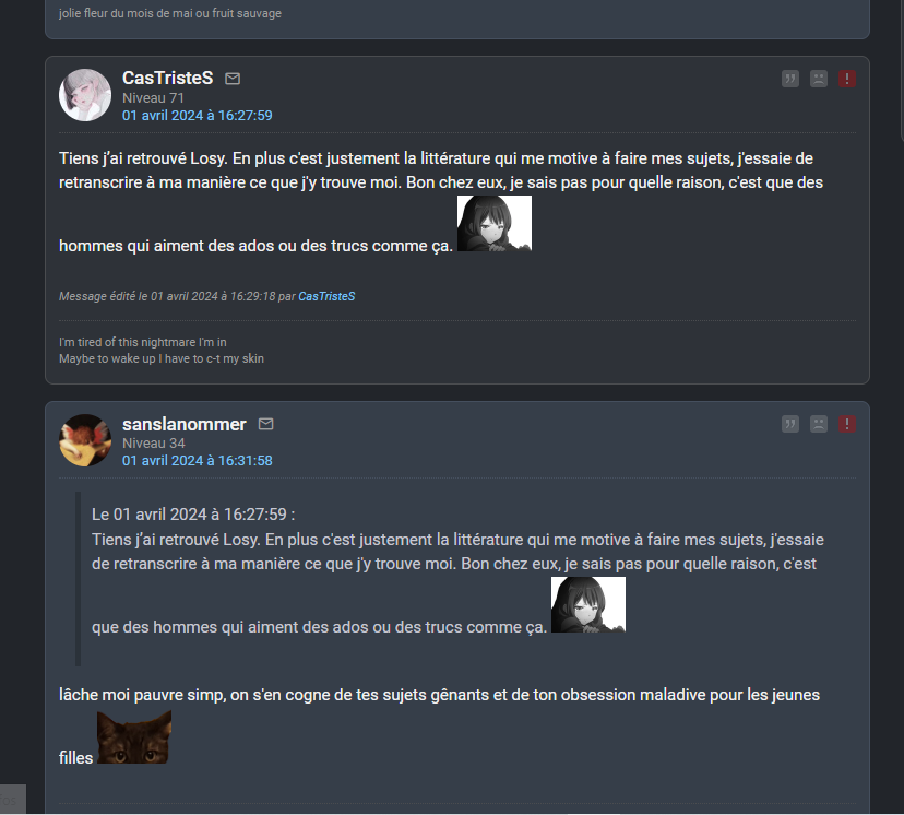 J'ai dit 30 fois que si j'ai jamais IRL ave elle c'est car elle était mineur c'est pas pour la harceler quand elle l'est.