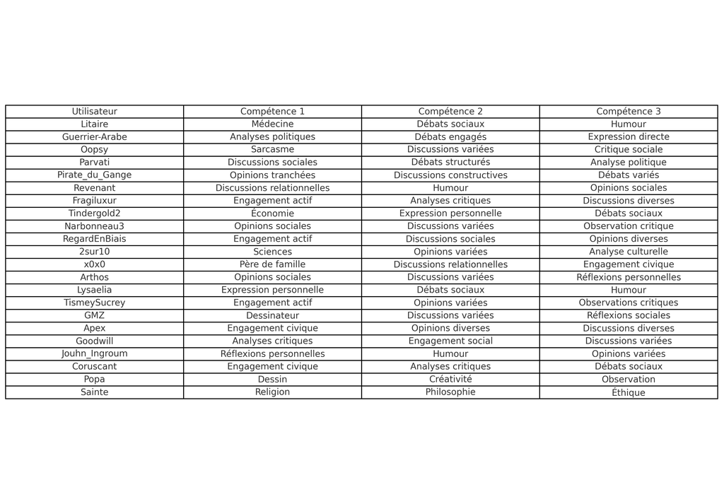 GPT a fait un mapping des compétences des utilisateurs. Idéal pour reseauter et si vous cherchez la résolution d’un problème !