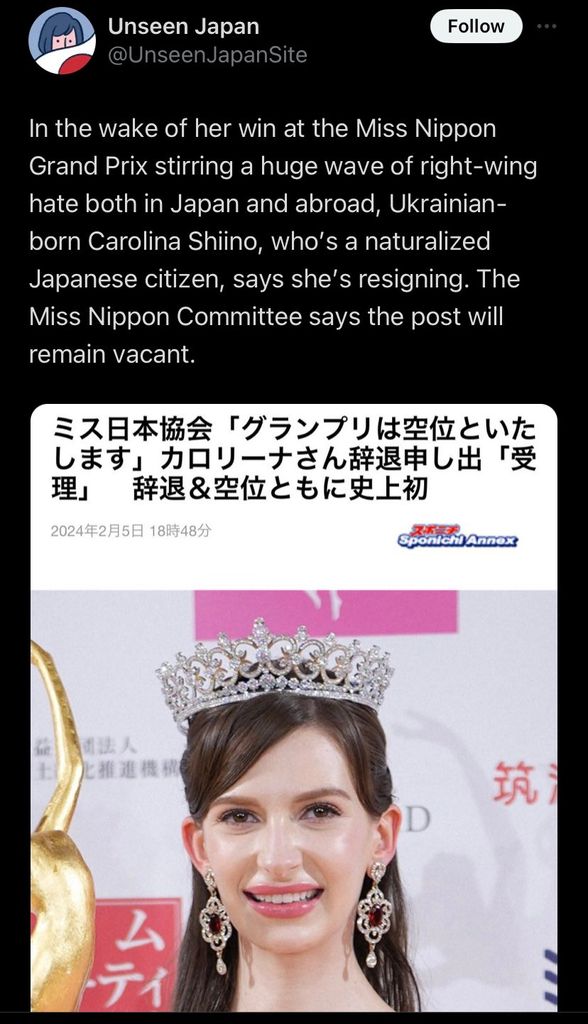 Le Japon a donc officiellement aucune Miss pour 2024